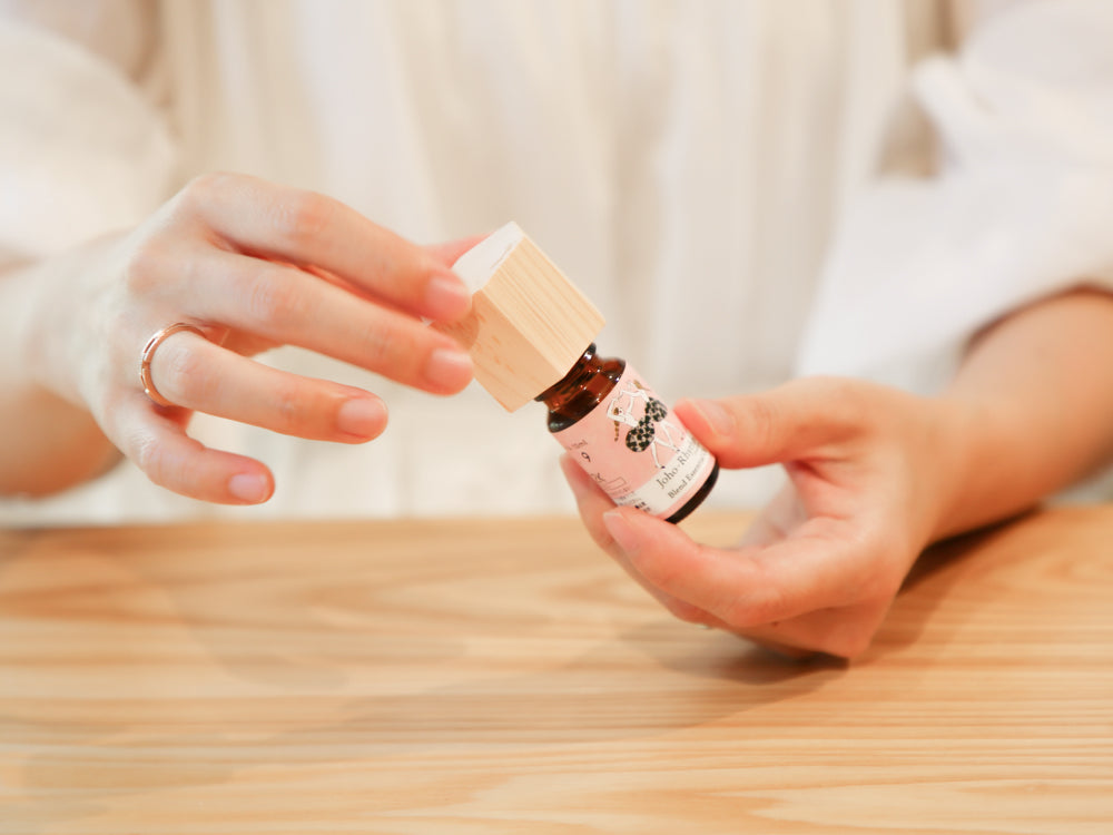 今回お届けするアロマオイルは、甘くも爽やかな香りなので、ホッとしたい時、気分転換したい時にも楽しめると思います。ヒノキのアロマキャップは、瓶のキャップを取り変えて置いておくと、ほのかに香るので、はじめてアロマを使う人はもちろんですが、枕元やデスクといったパーソナルスペースで手軽に楽しめます。自分だけの時間を体感して貰えたら嬉しいです!
